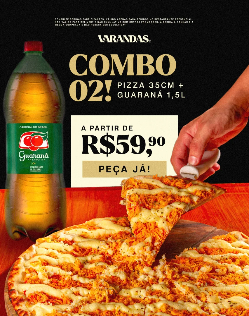 Neste combo, você recebe uma pizza de até dois sabores 30cm + Guaraná de 1,5l para compartilhar com quem você ama!